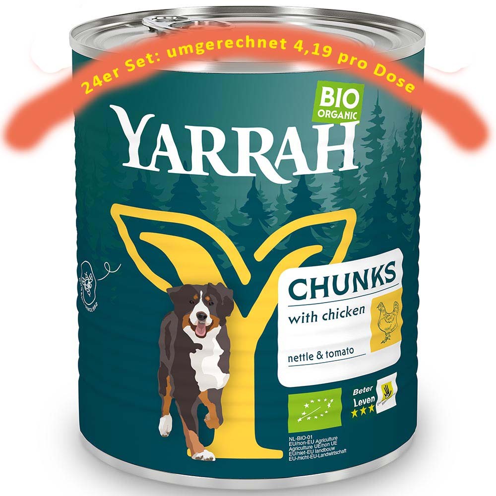 24er-SET Bio Bröckchen mit Huhn 820g Hund Nassfutter Yarrah